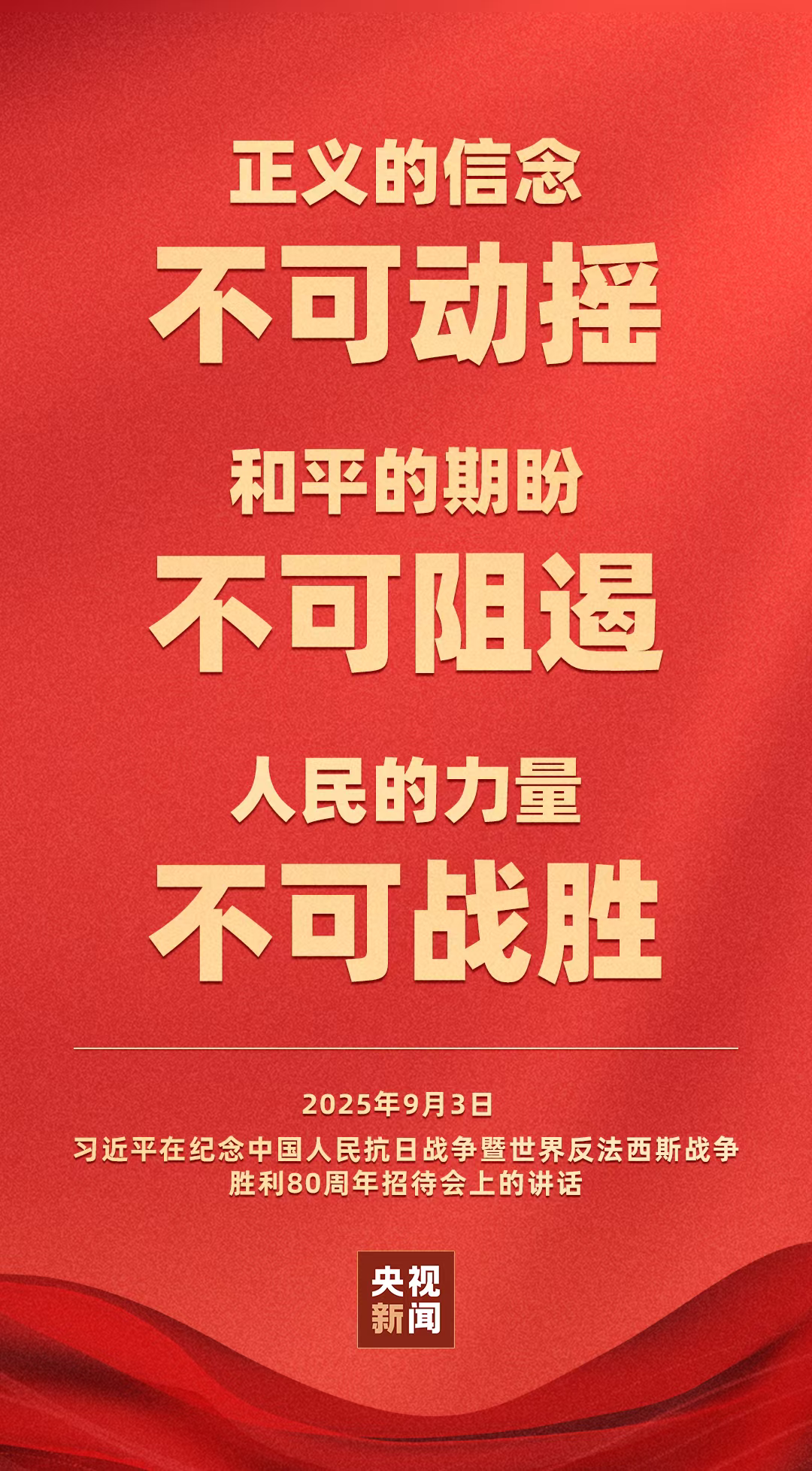 历史告诫我们,正义的信念不可动摇,和平的期盼不可阻遏,人民的力量不可战胜!