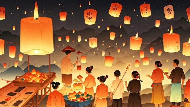 六、现代庆祝方式的变化 随着时代的发展,中元节的习俗也在不断演变。许多年轻人选择以线上祭祀、公益活动等方式表达对先人的缅怀。城市中也出现了“中元文化节”、“祭祀文化展”等新形式,让传统节日焕发新的生命力。